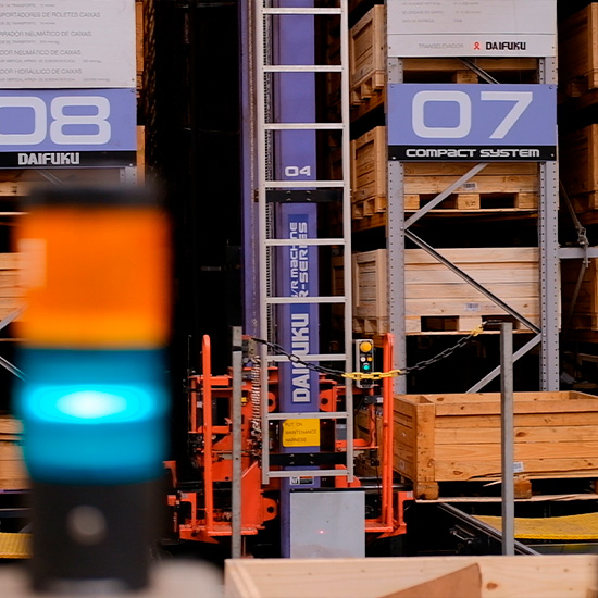A solução especificada para a operação da Belenus resultou em aproximadamente 10.000 m2 de armazém verticalizado combinando sistemas de armazenagem automática: o primeiro deles é o Compact System, que está destinado à armazenagem de caixas de madeira com base de palete do tipo PBR e baixa altura, proporcionando ocupação muito maior do estoque de produtos de dimensões volumosas. O Compact System é composto por nove transelevadores em operação e capacidade de armazenagem de quase 15.000 paletes.